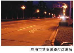 路燈照度的高低,會直接影響車輛與市民夜間的出行安全,所以政府對路燈的照度有明確的要求。而路燈的照度比較低,不僅僅是光源的發(fā)光效率低的緣故,而是在于燈罩的透光度不夠,導致光源發(fā)光效率的浪費。珠海華而美照明有限公司在不改變路燈原來的特色基礎上,燈型、桿型、電器、光源等不改變,只是融入不少高科技元素,將原來的圓球燈具更換為具有透光性能強的PC材料制成的新型圓球燈罩,燈罩內部加裝了精確定位的光學系統(tǒng)照明器材,這樣使路燈燈具提高透光度,減少光能浪費,經(jīng)測量,試用的路段路面平均照度是原先的6倍多,大大提高了路燈照明效果。