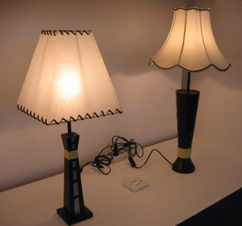 這一系列臺燈造型很特別,擁有優(yōu)雅線條,身上的白紗也是用玻璃制成,有一種特殊的飄逸、通透感覺。臺燈的底座都是樹藝結(jié)構(gòu),古色古香,很具特色。月兔臺燈造型溫文典雅,整體感覺好。