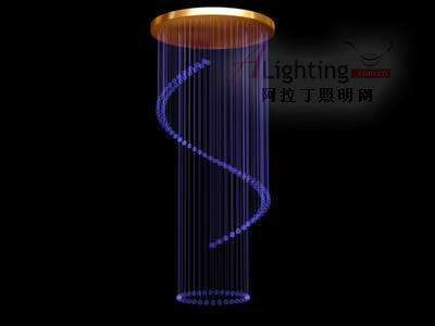 光纖導(dǎo)光性能優(yōu)異,可彎曲,采用側(cè)光勾勒輪廓,流光溢彩點(diǎn)光亮度極高,用來裝飾天棚猶如群星璀燦。因此光纖燈常用于建筑物室內(nèi)外裝飾照明;同時(shí)因光纖防水性極高,不導(dǎo)電,適用于水下及潮濕環(huán)境而不損壞,還可以用于水下照明。如大型水族館、游泳池照明、水下探測等。本文主要展示在室內(nèi)裝飾中的作用及表達(dá)。