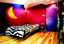 柔和的燈光使臥室充滿(mǎn)溫馨,月形燈與多個(gè)小射燈猶如星月交輝相映成趣,浪漫的氛圍使房子主人的文化品位含蓄地表達(dá)出來(lái)。