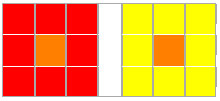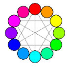 2、不同色相相鄰時(shí),都傾向于將對方推向自己的補(bǔ)色?!?/FONT>