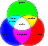色光混合中,三原色光是朱紅、翠綠、藍(lán)紫,它們都不能用其它色光相混產(chǎn)生。朱紅與翠綠 相混得黃色光;翠綠與藍(lán)紫相混得藍(lán)色光;藍(lán)紫與朱紅相混得紫紅色光;黃色光、藍(lán)色光、紫色光為間色光。當(dāng)三源色光按照一定比例相混時(shí),所得到的光是無彩色的白色光或灰色光。