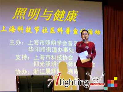 當(dāng)照明逐漸步入人們生活領(lǐng)域時(shí),照明設(shè)計(jì)師和專家學(xué)者繼續(xù)不遺余力地為營(yíng)造更美好的城市景觀及室內(nèi)照明環(huán)境創(chuàng)造條件。如何讓更多的人分享照明應(yīng)用成果,體驗(yàn)舒適愉悅的照明環(huán)境如何改善人們的生活質(zhì)量,感受綠色照明文化成為了業(yè)界與學(xué)術(shù)界共同探討的問(wèn)題。2007年5月25日,由上海市照明學(xué)會(huì)普及委員會(huì)及上海華陽(yáng)街道辦事處主辦,仰光照明設(shè)計(jì)師成長(zhǎng)基金及上海市科技協(xié)會(huì)支持,“照明與健康”主題宣講活動(dòng)在上海華陽(yáng)社區(qū)順利拉開(kāi)帷幕。