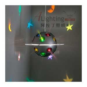 宇宙飛船式的吊燈,每個孔都能投射出不同的光影效果,各色各形的月亮、星星等光線,給兒童帶來無限想象空間。