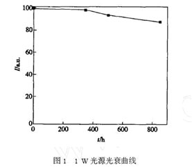 基于多芯片集成的大功率白光LED,國內(nèi)已有幾家公司在研究開發(fā),部分產(chǎn)品已經(jīng)上市。本文在大量試驗研究的基礎(chǔ)上,主要針對集成功率型白光LED的老化特性、光品質(zhì)以及相關(guān)驅(qū)動技術(shù)進(jìn)行具體闡述。