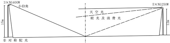 路燈的安裝仰角也是影響眩光指標(biāo)的一個(gè)重要因素。CIE規(guī)定路燈的仰角不能大于5,其主要目的就是限制眩光。我國有關(guān)規(guī)定路燈的安裝仰角在15以內(nèi),主要是受經(jīng)濟(jì)條件制約,為了降低燈高,節(jié)省造價(jià),當(dāng)在寬闊路面布燈時(shí),許多建設(shè)單位為了增加燈具的橫向照射距離,往往不是增加燈桿高度,而是隨意增加燈具的仰角,造成不必要的眩光污染。實(shí)驗(yàn)表明,增加仰角對路面亮度并無質(zhì)的增長。而增加燈高、增大單燈功率并加大燈間距,即可保證照度及均勻度,又可減小仰角,限制眩光,同時(shí)由于用燈數(shù)量減少,造價(jià)并不增加。