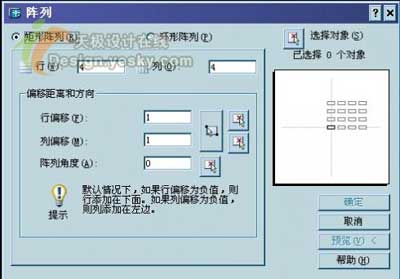 單擊“拾取行列偏移”按鈕,單擊指定兩個(gè)點(diǎn),此兩點(diǎn)的距離同時(shí)決定行和列的水平和垂直間距。
