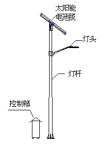 如圖2,系統(tǒng)由太陽(yáng)能電池組件部分(包括支架)、LED燈頭、控制箱(內(nèi)有控制器、蓄電池)和燈桿幾部分構(gòu)成;