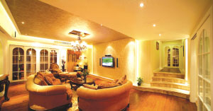 燈光運用 裝修材質(zhì)的色彩是固有的,只有配上合適的照明,才能更好地體現(xiàn)出質(zhì)感??蛷d的照明配置會運用主照明和輔助照明的燈光交互搭配,來營造客廳的氛圍。主照明提供客廳空間大面積的光源,通常擔(dān)任此任務(wù)的是光源來自上方的吊燈、吸頂燈和日光燈等。依主人的喜好可以有不同風(fēng)格的搭配,如氣派豪華的雪花石吊燈、水晶燈,富麗堂皇的金黃色裝飾燈等都是不錯的選擇。為增強客廳燈光照明效果,很多設(shè)計師還會選擇各色燈帶,如利用白色自然光燈帶增加居室的時尚感,利用米黃燈帶營造溫馨感,而藍色、紫色則能營造出神秘的色彩感覺。而一些尺寸較小的燈具,如壁燈、射燈、筒燈等,則作為輔助照明,加強光線層次感,突出局部材質(zhì)或飾物。