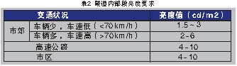 這一區(qū)域在過(guò)渡段和出口段之間,通常是隧道最長(zhǎng)的部分。它的亮度水平要求通常決定于車速和交通狀況,通常CIE設(shè)計(jì)標(biāo)準(zhǔn)如表2所示。