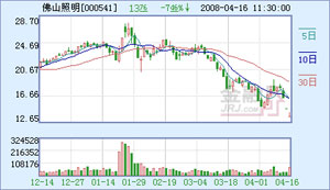 受到一季度業(yè)績大幅下滑的影響,今日有兩市“現(xiàn)金奶牛”之稱的佛山照明遭到失去信心的投資者無情的拋售 。         GO>>