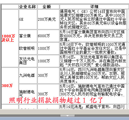 更多照明企業(yè)捐助災(zāi)區(qū)義舉>>>