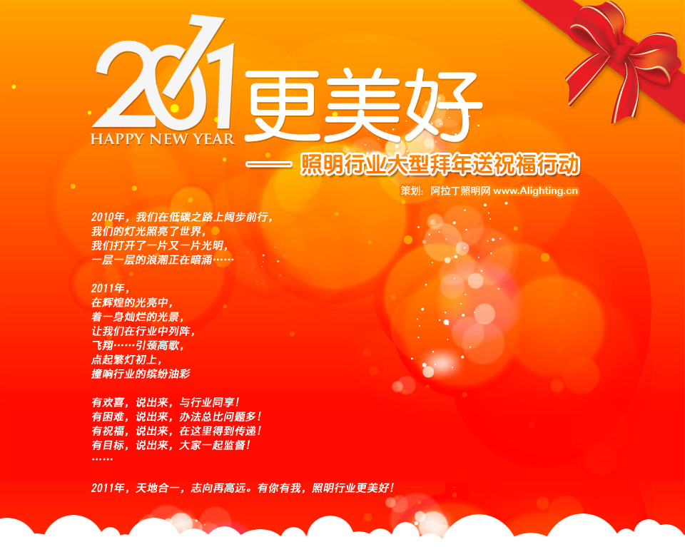 3、歡迎團(tuán)體攜會員集體送祝福,阿拉丁照明網(wǎng)編輯部可以專有欄目展示你們的信息,咨詢主編:020-3801-0783,陳小姐。