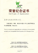 上海世博榮譽(yù)紀(jì)念證書