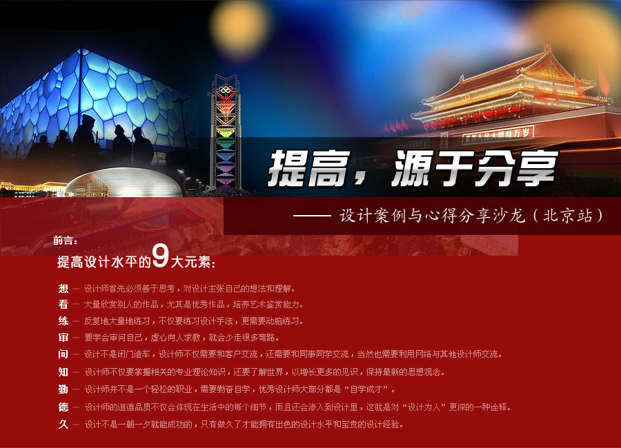 為建立設(shè)計師面對面交流學(xué)習(xí)的平臺,協(xié)助設(shè)計師提高設(shè)計水平,阿拉丁照明網(wǎng)將在北京舉辦設(shè)計案例與心得分享沙龍,誠邀各大設(shè)計師共同參與! >>詳細請點擊