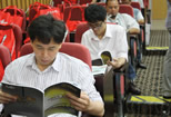 現(xiàn)場坐無虛席 共享聯(lián)盟秘書與美女主持合影 簽到 認真看書的觀眾