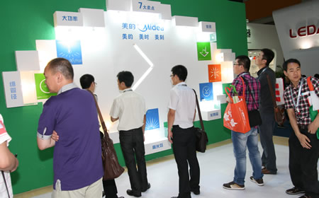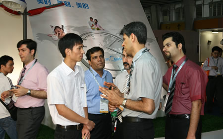 美的照明光亞展現(xiàn)場(chǎng)與海外客戶交流