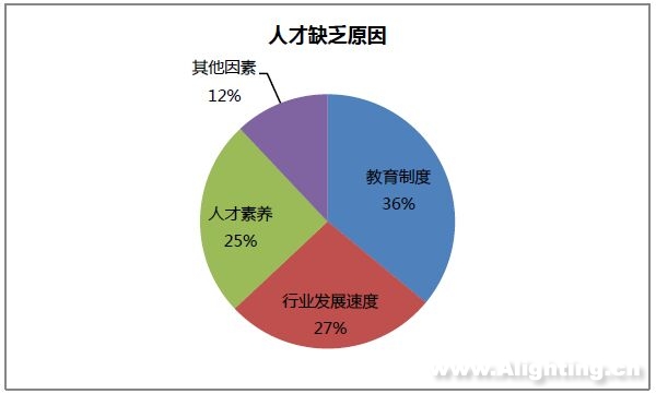 珠海韜播平板照明有限公司董事長(zhǎng)姚懷舉認(rèn)為L(zhǎng)ED照明行業(yè)高端專業(yè)技術(shù)人才嚴(yán)重不足,造成這種狀況的原因是中國(guó)產(chǎn)業(yè)在培養(yǎng)專業(yè)人才的投入和管理不足及技術(shù)人才缺乏深度鉆研的追求。從行業(yè)環(huán)境看,近幾年LED井噴式的發(fā)展,吸引了大規(guī)模資金和人員進(jìn)入LED行業(yè),導(dǎo)致行業(yè)規(guī)模以及企業(yè)數(shù)量急速膨脹,人才的需求變了剛需,大量的崗位需要專業(yè)的人才才能完成。教育制度落后于行業(yè)發(fā)展速度,這是導(dǎo)致LED技術(shù)人才匱乏最重要的原因。