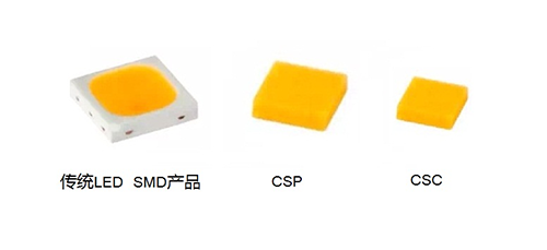 顧名思義,CSC(Chip Scale Coat)白話文:“晶片級(jí)涂覆”,可簡(jiǎn)單概敘為對(duì)單顆晶片進(jìn)行熒光粉高精度涂覆。與前輩CSP相比,在流明密度(更小尺寸,更大電流)方面的本領(lǐng)比前輩有高出不少,而且CSC結(jié)構(gòu)可在通用的封裝工藝中實(shí)現(xiàn)的,對(duì)光色的可控性比CSP大幅提升。