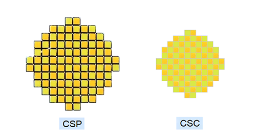 【不同點(diǎn)】CSP晶片間隔遠(yuǎn)大于CSC。