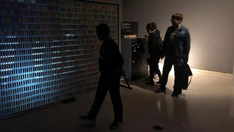 “燃?我”交互式藝術(shù)裝置,運用感應(yīng)器捕捉觀眾動搖實時投射到屏幕中。你在則亮,你舞則“燃”。你的行為舉止可以在感應(yīng)區(qū)域,一一被屏幕記錄進行實時的互動體驗。