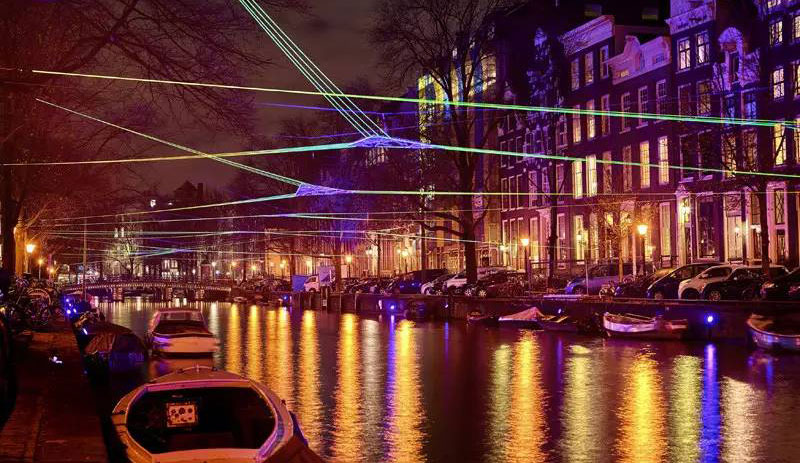 或許,阿姆斯特丹燈光節(jié)(Amsterdam Light Festival)是唯一一個能夠讓游客在船上徜徉、體驗藝術(shù)的燈光節(jié)。阿姆斯特丹燈光節(jié)在冬天拉開帷幕,一般在11月至12月開始,來年的1月結(jié)束,時間持續(xù)近兩個月。燈光節(jié)既有步行路線,又有獨特的乘舟路線。夜間,在船上,游客能夠看到被燈光裝點的河畔建筑,“航行”中提供的咖啡,則能夠驅(qū)散冬日的寒冷。