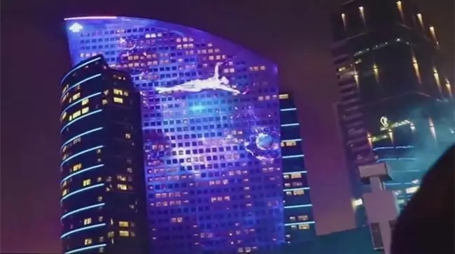 Laservision公司與迪拜IMAGINE大型展會(huì)合作打造了的3D投影秀,斬獲了“世界上最大的固定光雕投影”的吉尼斯世界紀(jì)錄。迪拜節(jié)日之城洲際酒店被改造成了一塊4857平方米的投影屏,這次加上 60臺(tái)Panasonic投影機(jī),以完美呈現(xiàn)3D動(dòng)態(tài)影像。這塊巨型的水幕表演已經(jīng)取得了世界上公認(rèn)的領(lǐng)先水準(zhǔn)。整個(gè)IMAGINE是結(jié)合了高清視頻、水幕、動(dòng)態(tài)噴泉、激光、環(huán)繞聲、智能燈光和火焰特效等諸多元素的一場(chǎng)大規(guī)模3D投影秀。
