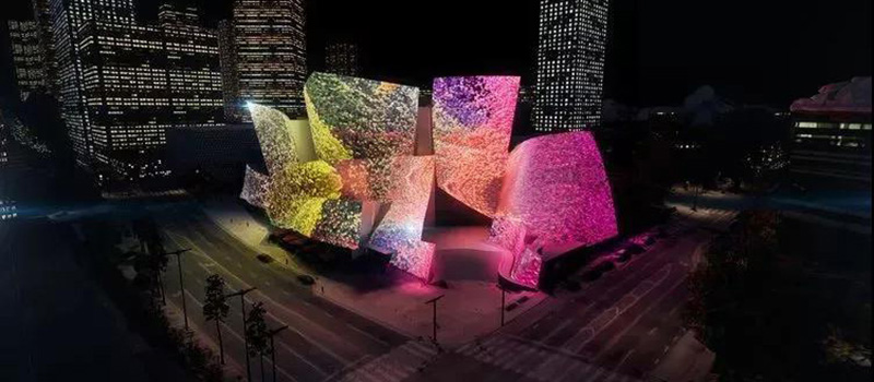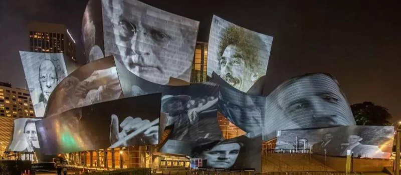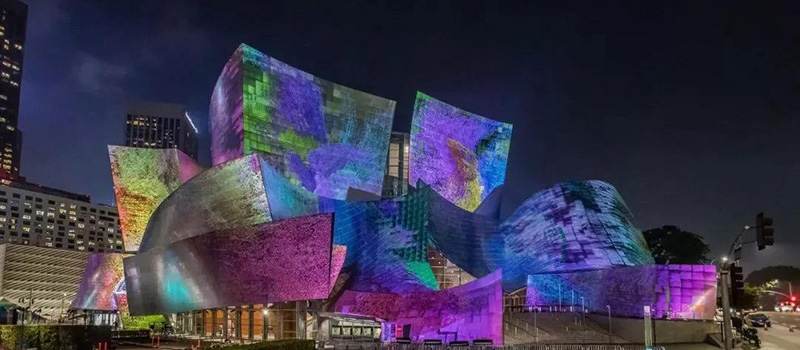 對于知名建筑的“表皮”進(jìn)行創(chuàng)意性改造,總是能吸引眼球,且充滿話題性。例如每年音樂燈光節(jié)上的悉尼歌劇院,當(dāng)然,弗蘭克?蓋里(Frank Gehry)在洛杉磯設(shè)計的標(biāo)志性建筑華特?迪士尼音樂廳(Walt Disney Concert Hall)也是其一。這次的光影大秀是由土耳其藝術(shù)家瑞克?阿納多(Refik Anadol)操刀進(jìn)行夢幻又繽紛的"改造"。表演免費向公眾開放。為了紀(jì)念洛杉磯愛樂樂團(tuán)成立100周年,一場前所未有的三維投影表演將在華特?迪士尼音樂廳的不銹鋼外立面上上演。