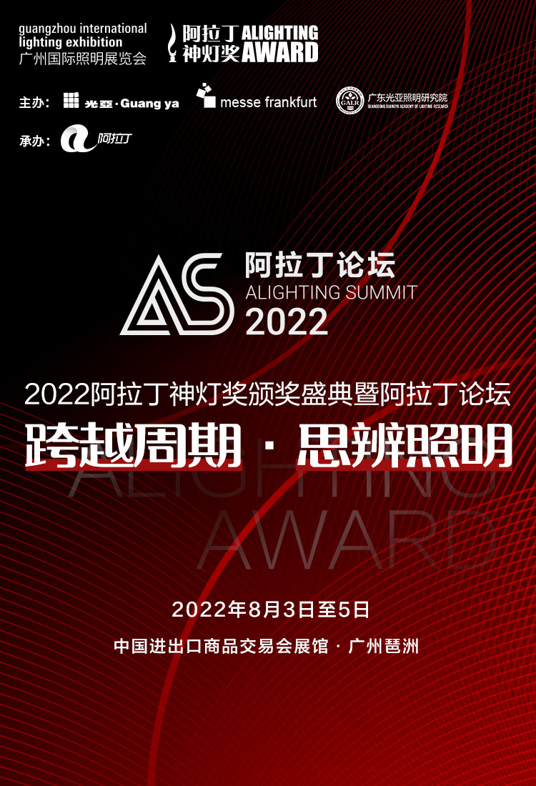 作為最具影響力的照明行業(yè)盛會——阿拉丁論壇同期將舉行 “有著照明行業(yè)奧斯卡獎”之稱的2022阿拉丁神燈獎頒獎盛典,通過評獎頒獎樹立領(lǐng)域標桿,發(fā)掘、匯聚中國照明行業(yè)先 進產(chǎn)品、技術(shù)、設(shè)計及項目案例成果。