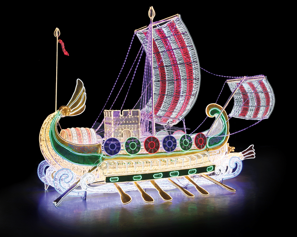 產(chǎn)品取材古羅馬戰(zhàn)艦,造型美觀,形狀逼真,采用高亮度LED燈體及特殊透光布料制作而成,防水性好,亮度高、耗電量低,節(jié)能環(huán)保。廣泛應(yīng)用于各種燈光節(jié)、公園、商業(yè)廣場(chǎng)、酒店大堂等場(chǎng)所作為景觀造型裝飾燈飾。