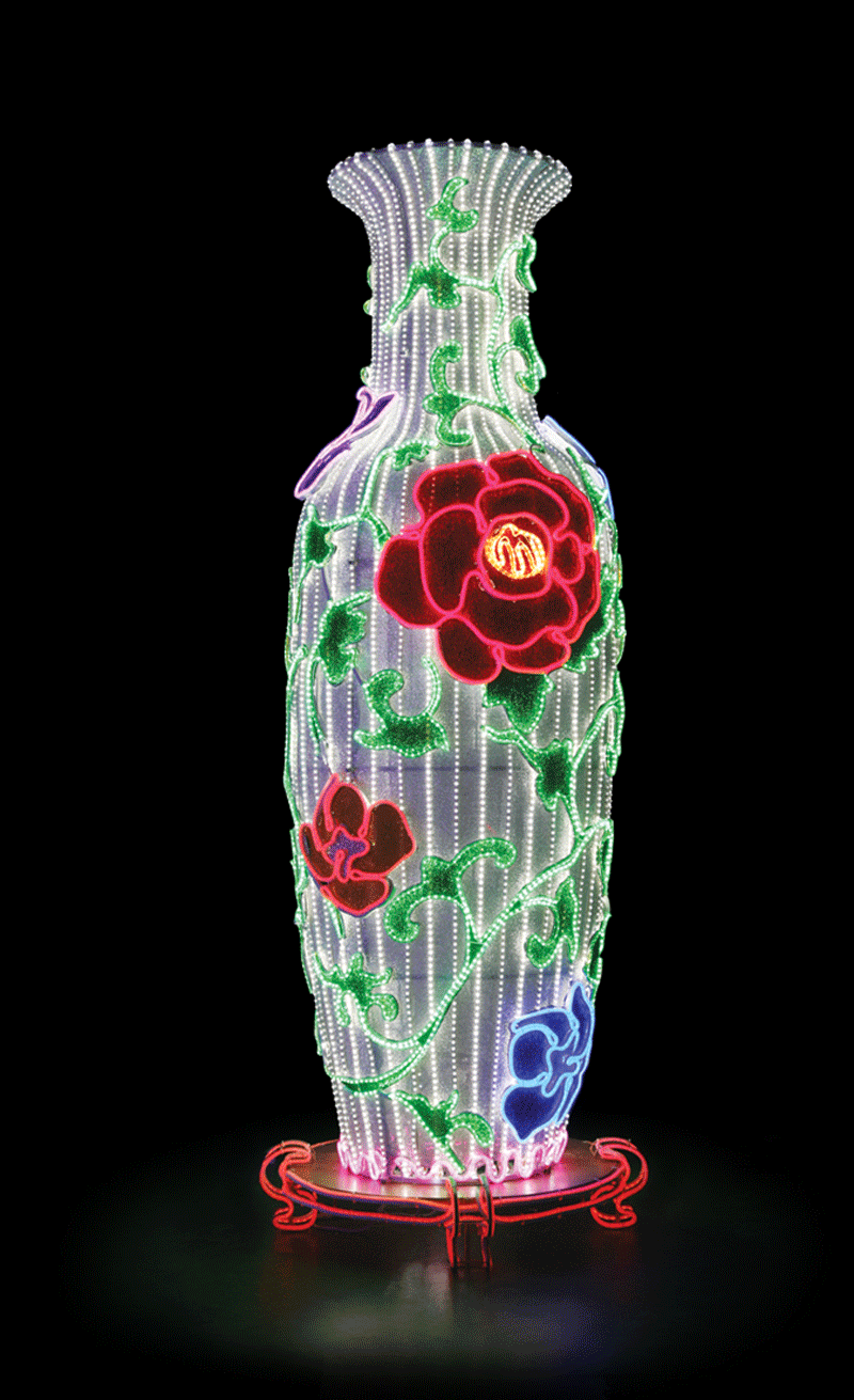 該產(chǎn)品取材于中國(guó)傳統(tǒng)瓷器大花瓶,寓意為吉祥平安,具備濃厚的中國(guó)傳統(tǒng)文化氣息。產(chǎn)品采用高亮度LED燈體及特殊透光布料制作而成,防水性好,亮度高、耗電量低,節(jié)能環(huán)保。廣泛應(yīng)用于各種燈光節(jié)、公園、商業(yè)廣場(chǎng)、酒店大堂等場(chǎng)所作為景觀(guān)造型裝飾燈飾。