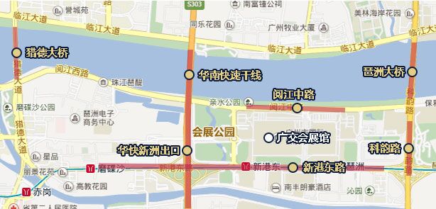 亞洲最大的現(xiàn)代化展覽中心——中國進(jìn)出口商品交易會展館(簡稱廣交會展館)座落于中國廣州琶洲島。展館地理位置優(yōu)越,西面有華南快速干線、南面有新港東路、東面是科韻路等寬闊的主干道路,以及會展中心主體建筑旁邊的會展西路、會展東路等功能內(nèi)線道路。周邊交通設(shè)施配備完善,通過地鐵、公交車、出租車等多種交通方式均可到達(dá)展館。